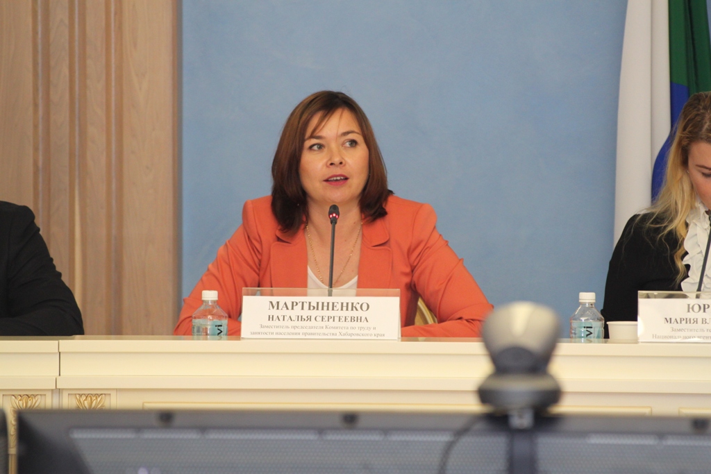 Модератор круглого стола Мария Юргелас, заместитель генерального директора АНО «Национальное агентство развития квалификаций», рассказала о Национальной системе квалификаций и перспективах развития кадрового потенциала Российской Федерации. Наталья Мартыненко, заместитель председателя Комитета по труду и занятости населения правительства Хабаровского края, продолжила разговор о трудовых ресурсах, опираясь на статистику Хабаровского края.